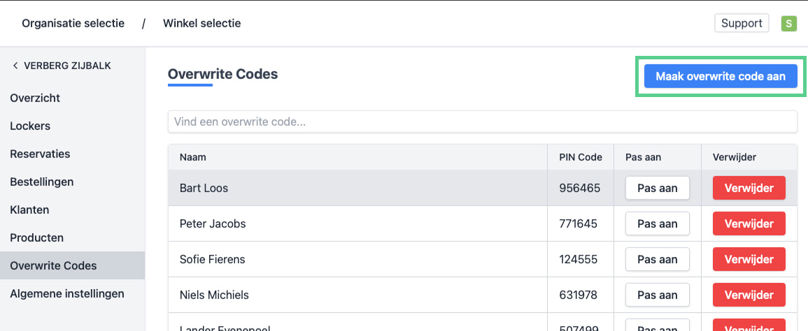 Opgelet, er kunnen maximum 10 overwrite codes aangemaakt worden.