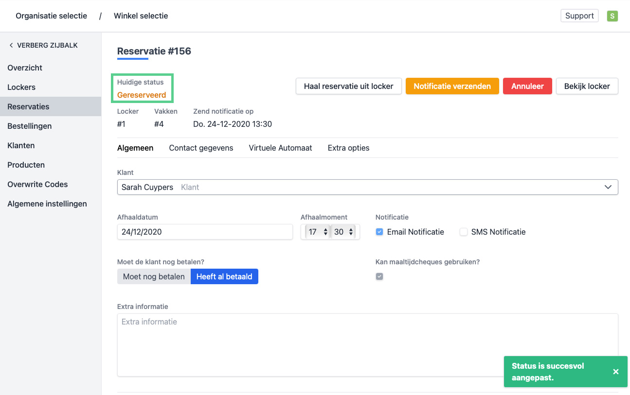 Als je meerdere vakken aanduidt, zal de klant slechts 1 code ontvangen om de verschillende vakken te openen. Bij het intikken van de code bij de afhaling, gaan de verschillende vakken tegelijkertijd open.