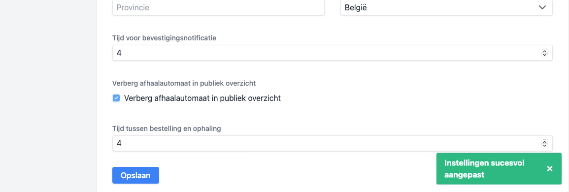 - Bij een succesvolle wijziging zie je rechts onderaan een melding dat de instellingen succesvol aangepast werd.