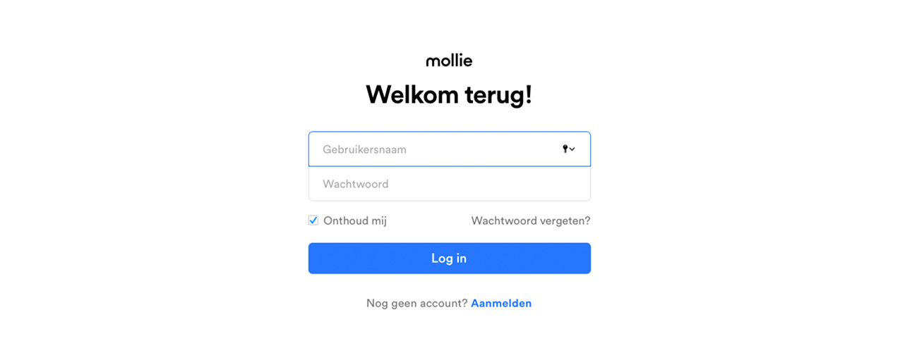 Heb je nog geen Mollie account? Maak eerst een account aan en meld vervolgens aan.
