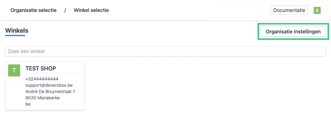 - Meld je aan op https://app.viresmo.com. Selecteer je organisatie en klik rechts boven op "Organisatie Instellingen".