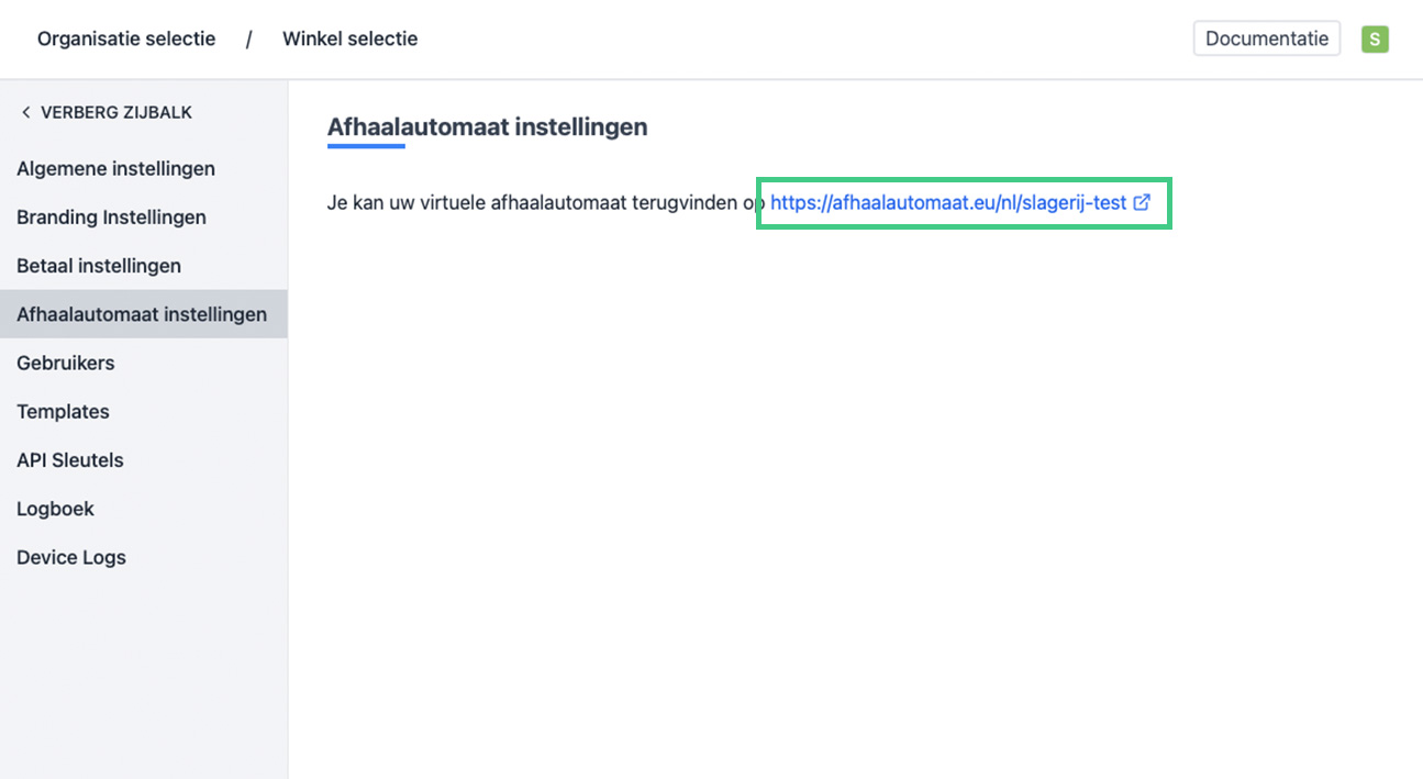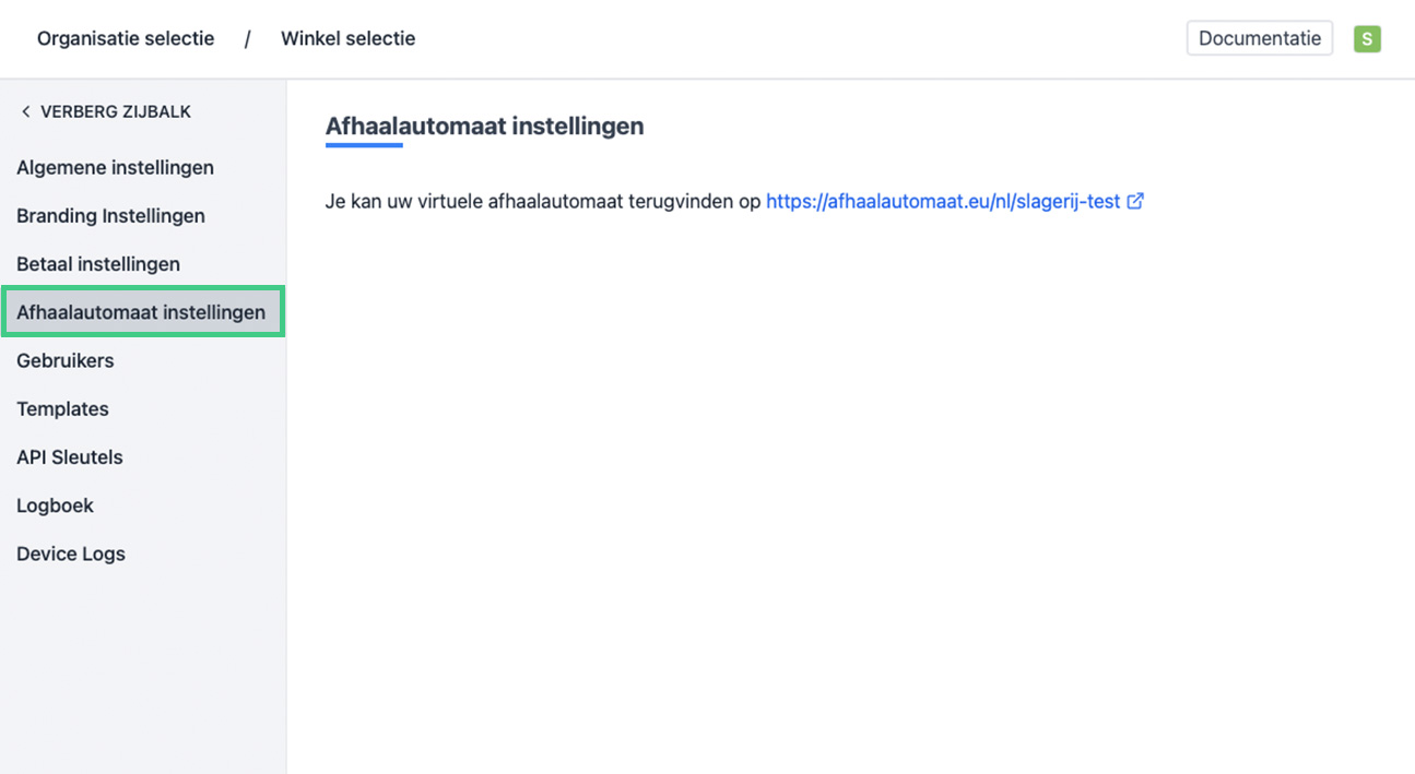 - Links in het menu, ga naar "Afhaalautomaat instellingen".