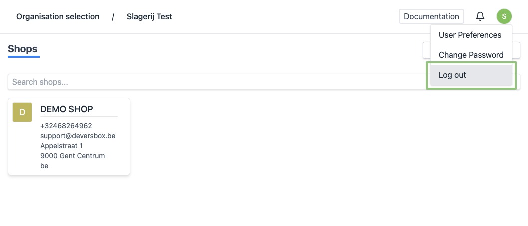 In the top right corner, click the round icon with the initial of your firstname. A dropdown menu appears. Click
