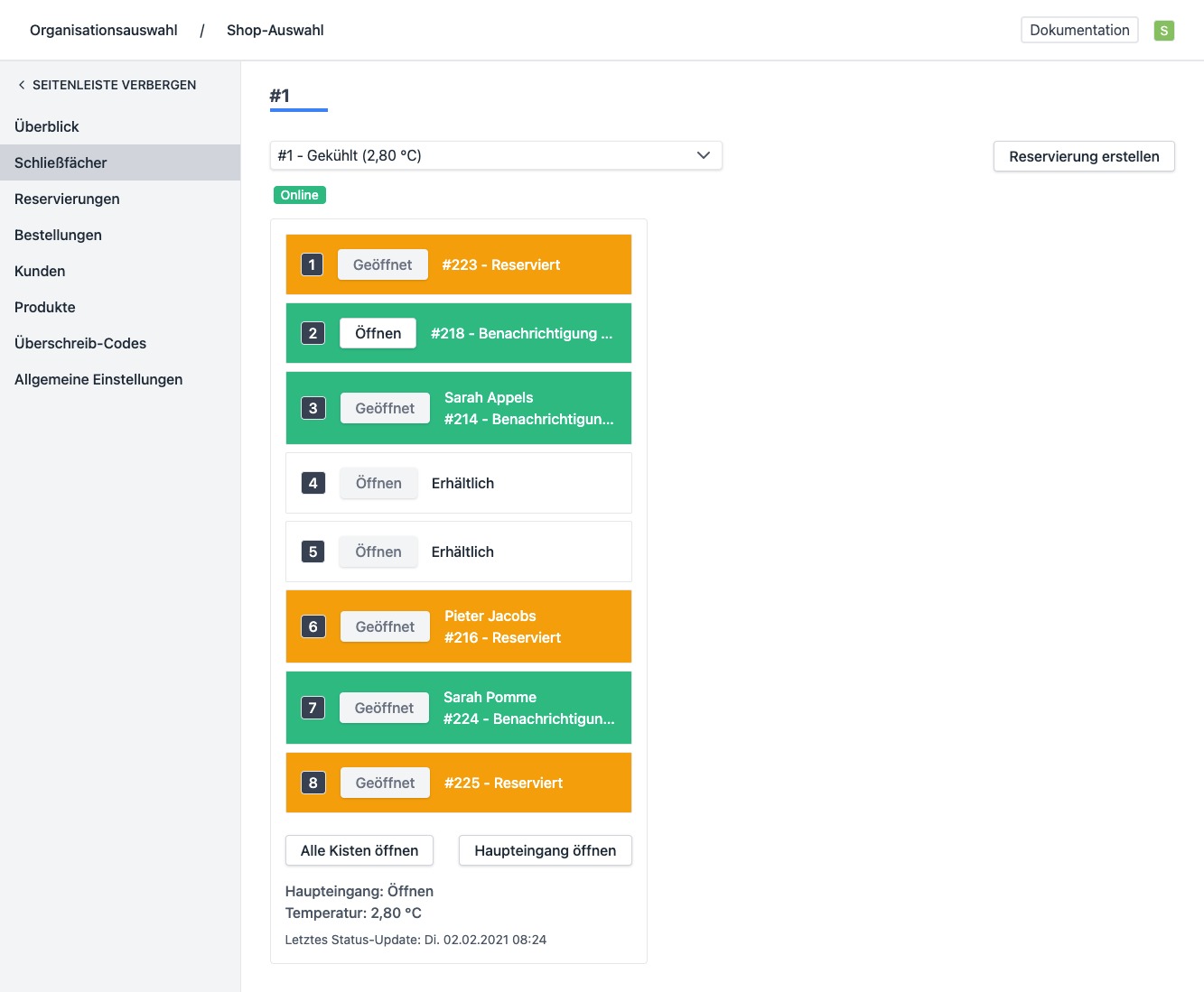 - Fach/Fächer fest reservieren - Kreuze diese Option an, wenn du die Reservierung nach Abholung nicht automatisch entfernen möchtest, so kannst du beispielsweise für Reinigungspersonal einen Schlüssel in ein Fach legen.