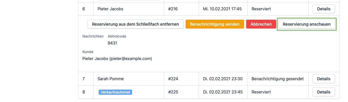 - Du gelangst auf die Detailseite der Reservierung.