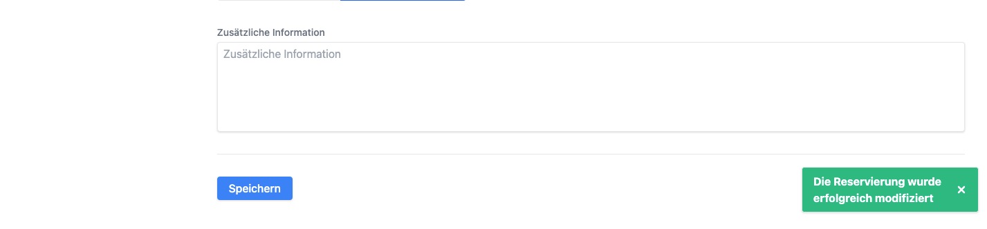 - Bei einer erfolgreichen Änderung wird die Seite automatisch aktualisiert. Rechts unten siehst du eine Mitteilung, dass die Reservierung erfolgreich angepasst wurde.