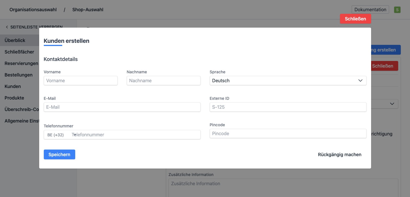- Wenn du dich dafür entschieden hast, einen neuen Kunden zu erstellen, wird dir ein Formular angezeigt. Gib die Daten des Kunden ein und klicke anschließend auf "Speichern". Der neue Kunde wird automatisch zu deiner Kundenliste hinzugefügt.