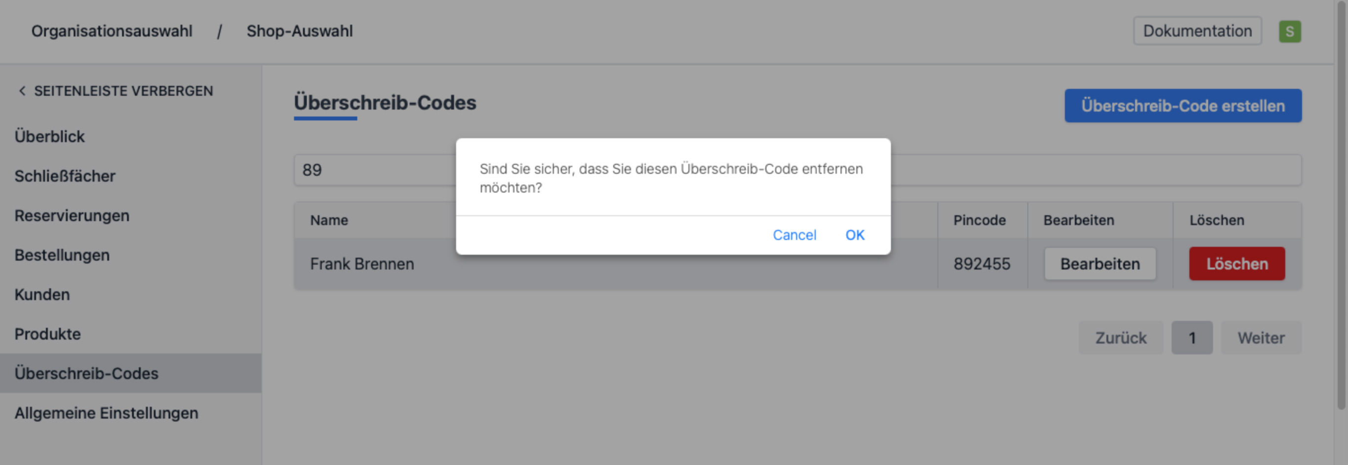 - Klicke auf die Zeile oder die Taste "Entfernen" bei dem Nutzer, den du entfernen möchtest. Findest du den Nutzer nicht? Dann verwende das Suchfeld über der Liste, um den Nutzer oder den Code schnell wiederzufinden.