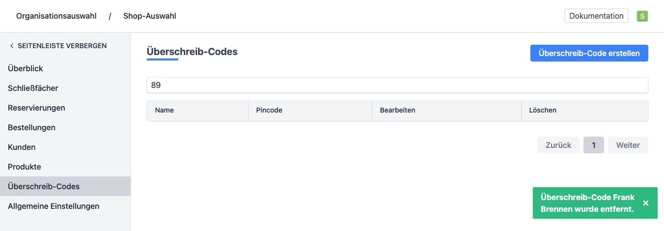 - Dir wird eine Liste mit allen Overwrite-Codes angezeigt, die aktuell in Gebrauch sind.