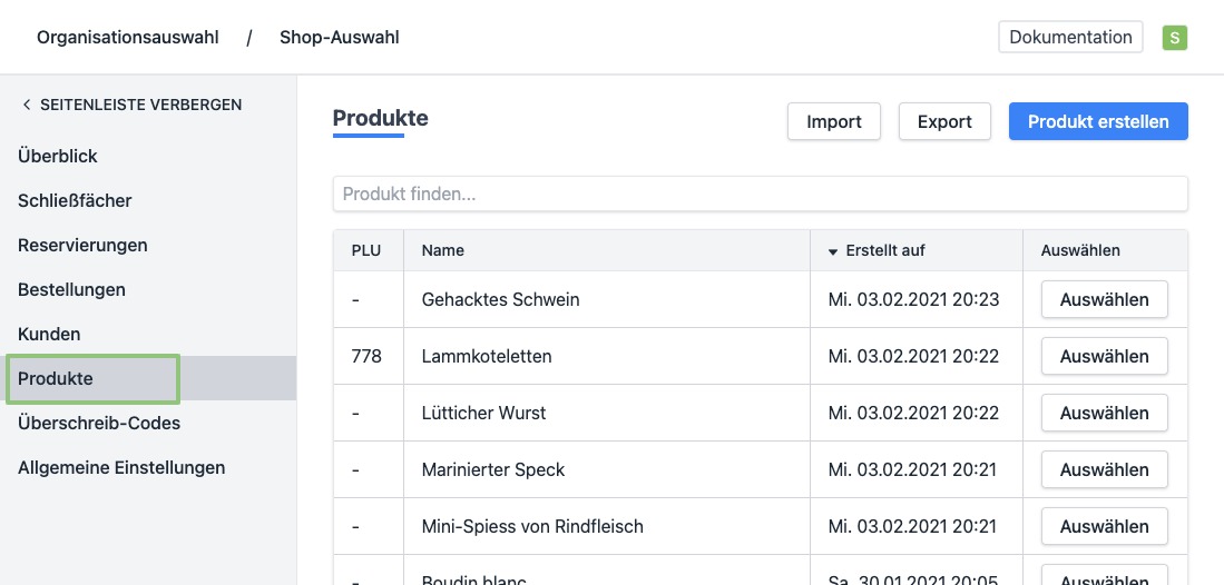 - Dir wird eine Liste mit all deinen Produkten angezeigt.