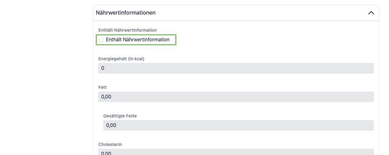 - Gib über Enthält Informationen über Nährwerte an, um die Nährwerte anpassen zu können.