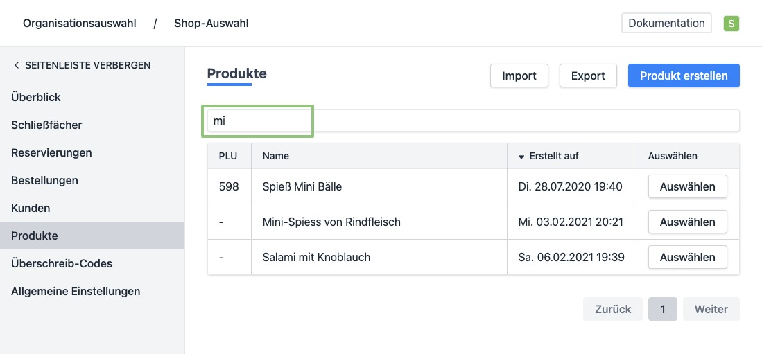 - Dir wird eine Liste mit all deinen Produkten angezeigt.