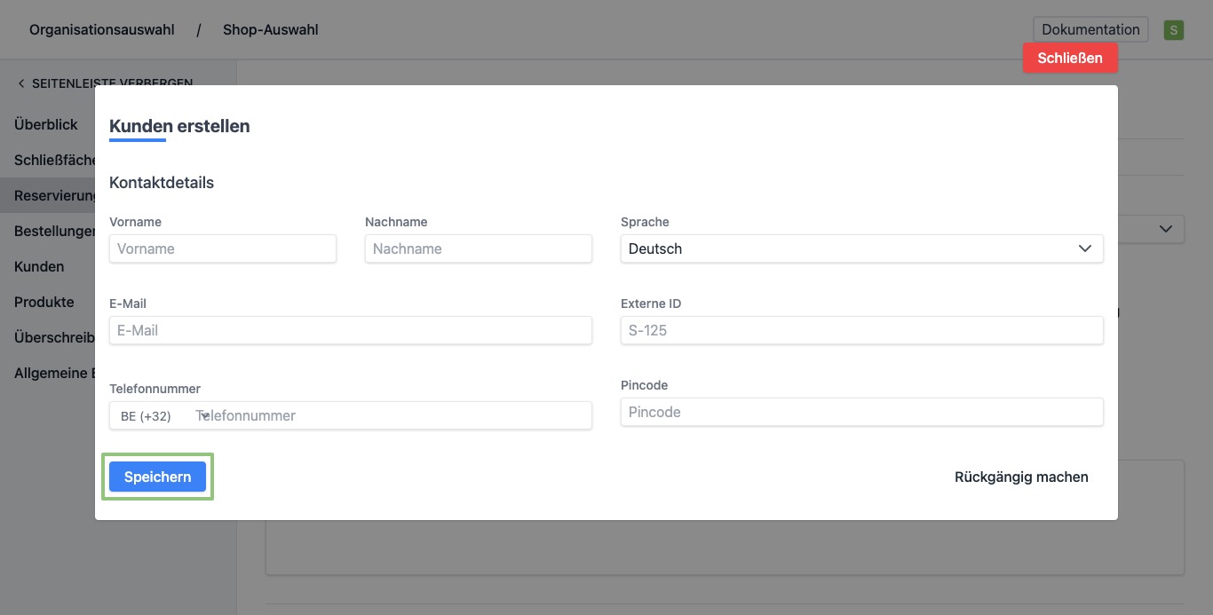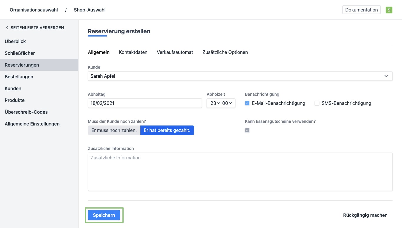 - Wenn alle Reservierungsdaten eingetragen wurden, klicke auf “Speichern”.
