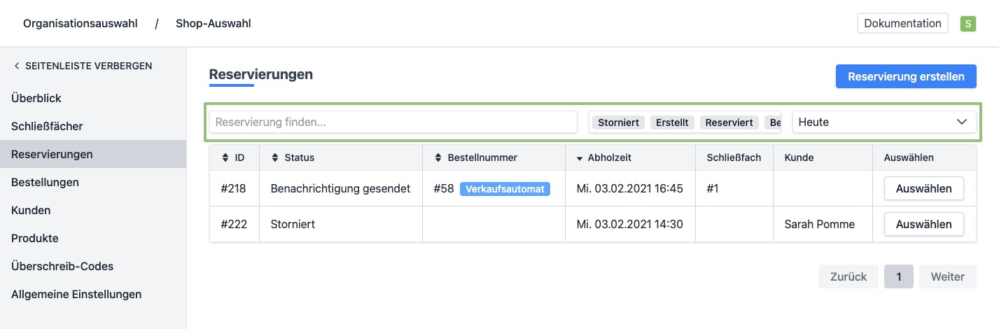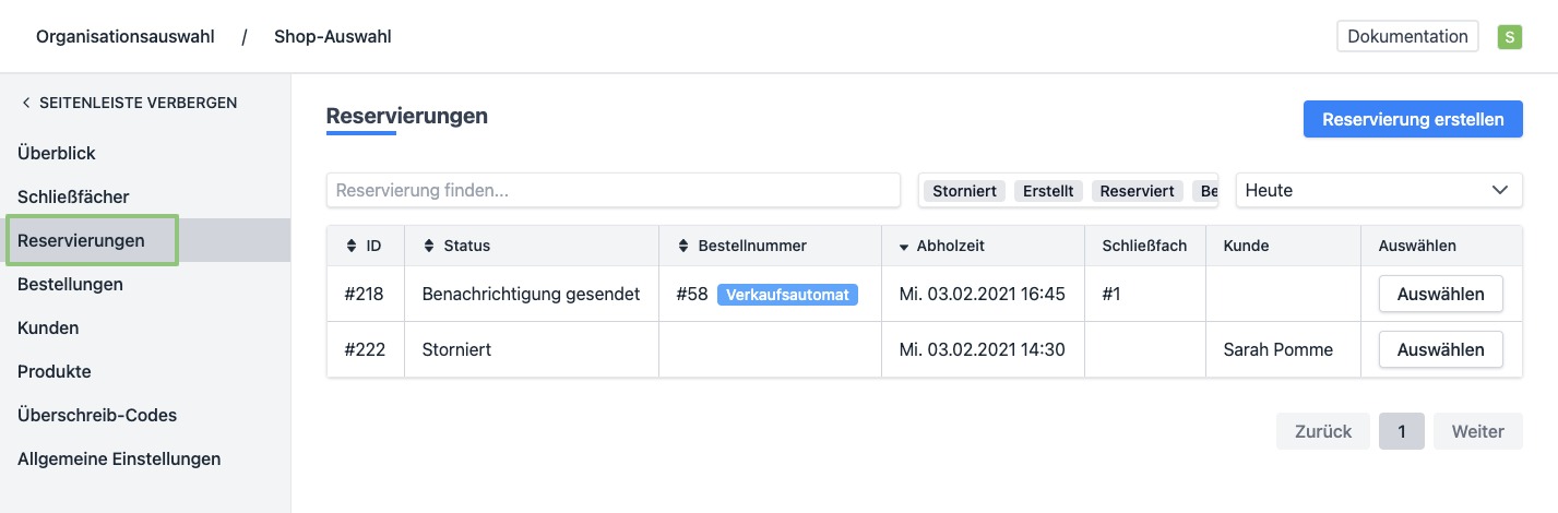 - Fach/Fächer fest reservieren - Kreuze diese Option an, wenn du die Reservierung nach Abholung nicht automatisch entfernen möchtest, so kannst du beispielsweise für Reinigungspersonal einen Schlüssel in ein Fach legen.