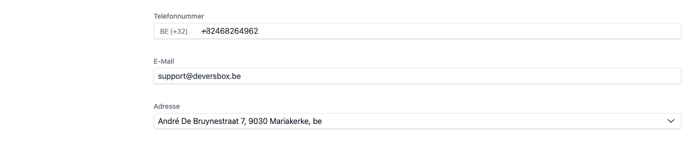 - Adresse: Straße**, Nummer, Postleitzahl, Stadt, Provinz, Land