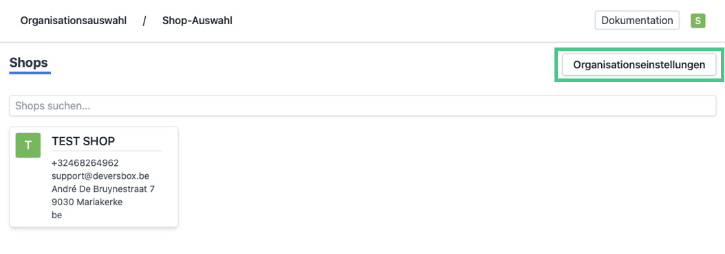 - Melde dich an auf https://app.viresmo.com. Wähle dein Unternehmen aus und klicke oben rechts auf "Einstellungen Unternehmen".