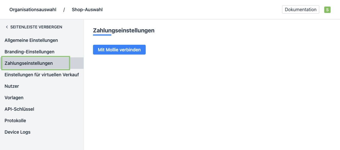 - Gehe links im Menü zu "Einstellungen Zahlungen".