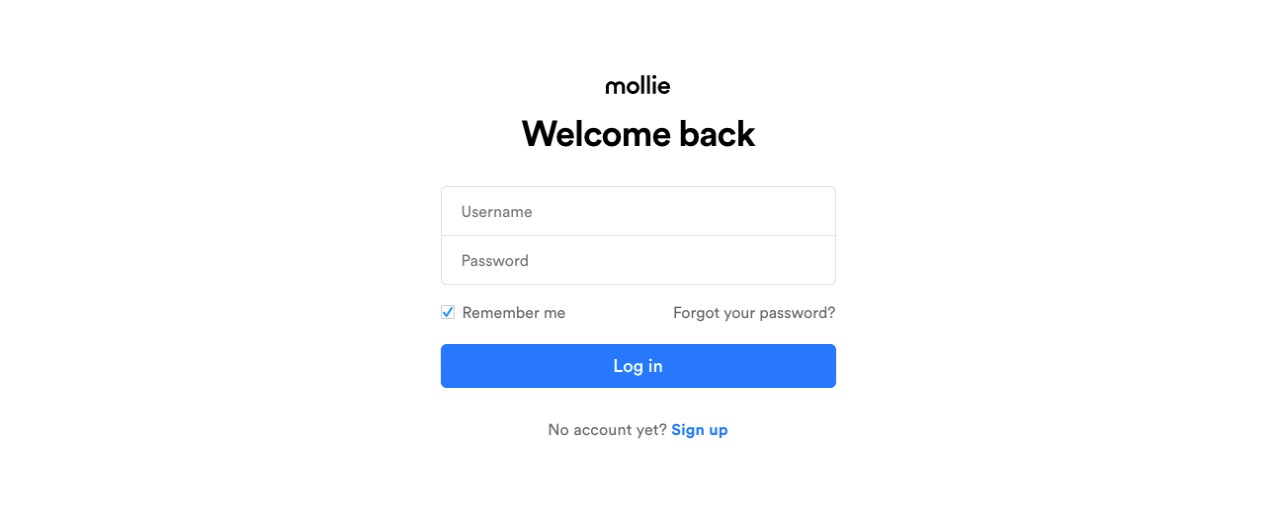 Hast du noch kein Mollie-Konto? Erstelle erst ein Konto und melde es anschließend an.