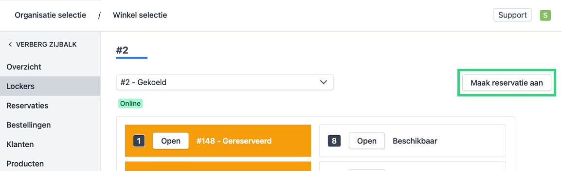 - Klik op de rij of de knop “Selecteer” bij een locker.