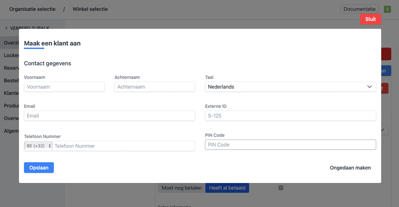 - Indien je koos om een nieuwe klant aan te maken, krijg je een formulier te zien. Vul de gegevens van de klant in en klik vervolgens op "Opslaan". De nieuwe klant wordt automatisch toegevoegd aan je klantenlijst.