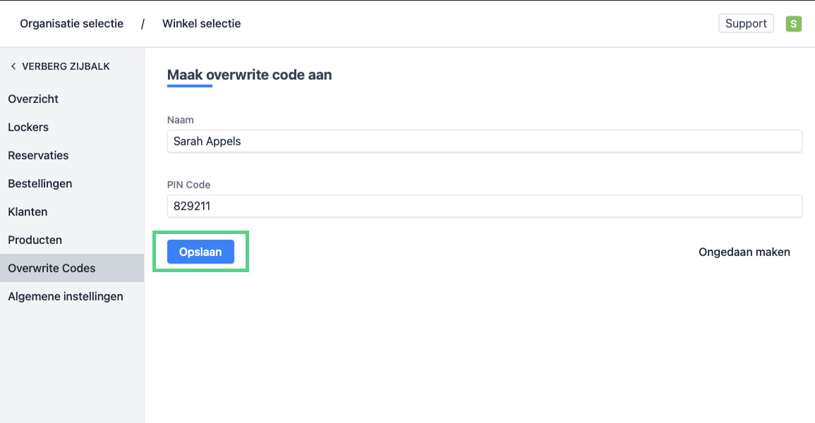 Opgelet, er kunnen maximum 10 overwrite codes aangemaakt worden.