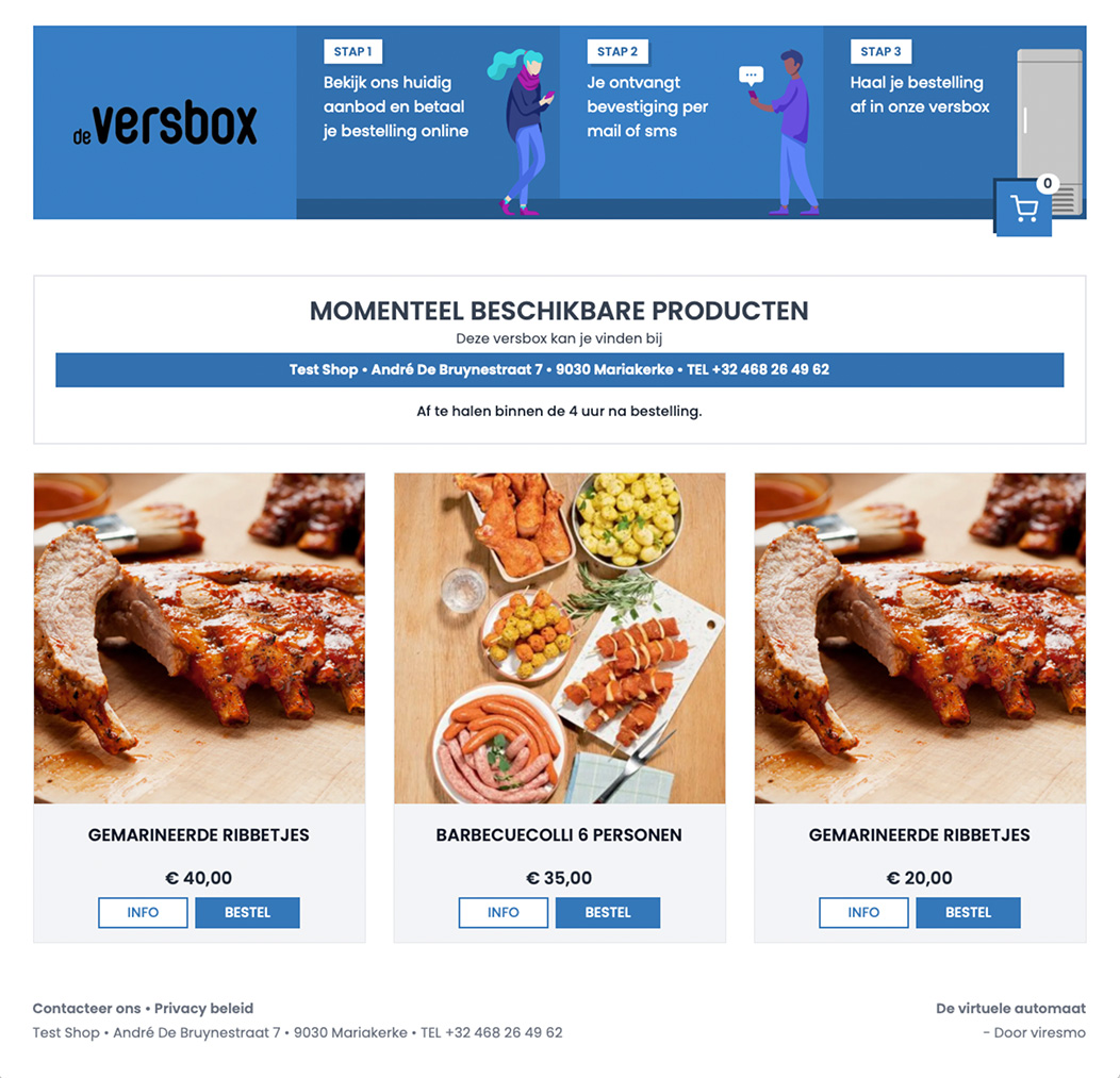 - Je klant surft naar de webpagina van je Virtuele Automaat. Op deze pagina kan hij het huidige aanbod in je locker(s) raadplegen.