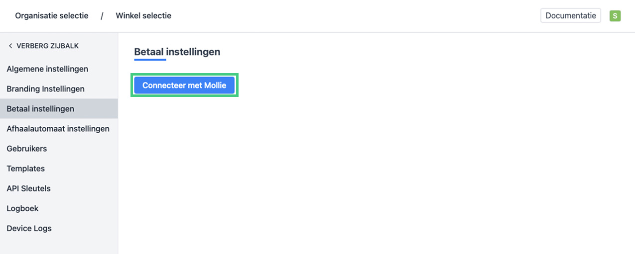 - Klik op "Connecteer met Mollie".