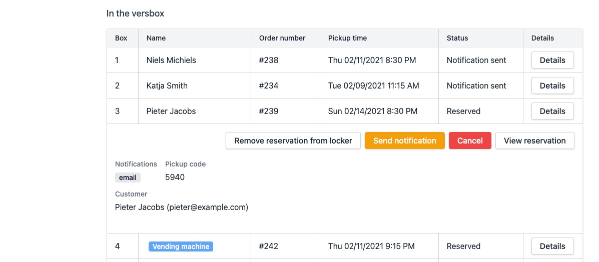 Underneath this dropdown menu you will see an overview of the current locker content. You will always see the number of boxes present in the selected locker, along with the status of each order in the boxes.