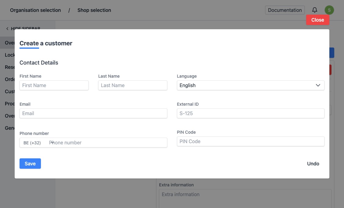 - If you chose to create a new customer, you will see a form. Fill in the customer's details and then click on "Save". The new customer is automatically added to your customer list.