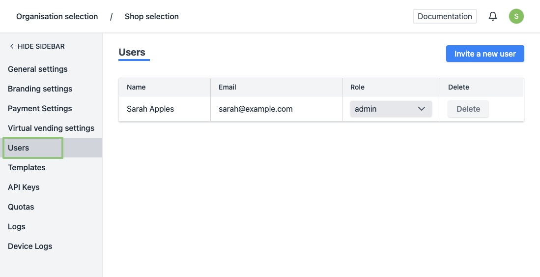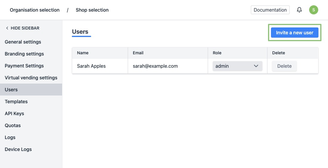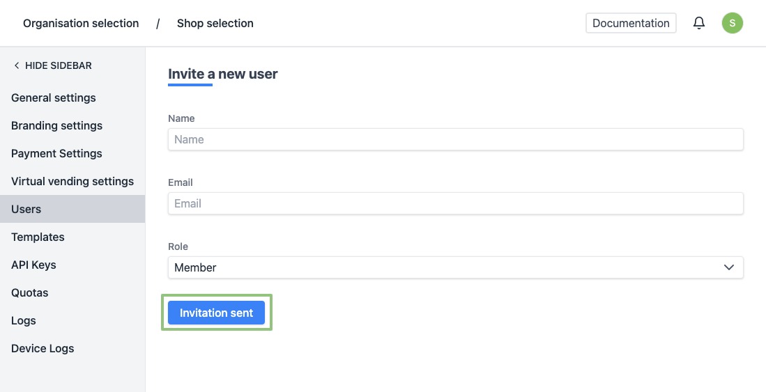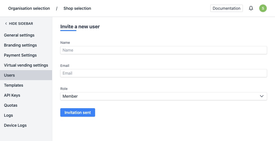 - Role - There are 2 roles available: Admin and Member. An admin has more rights. He can, for example, change the settings of the organisation. A member does not have rights to the settings and overwrite codes. Use the member role for your staff.