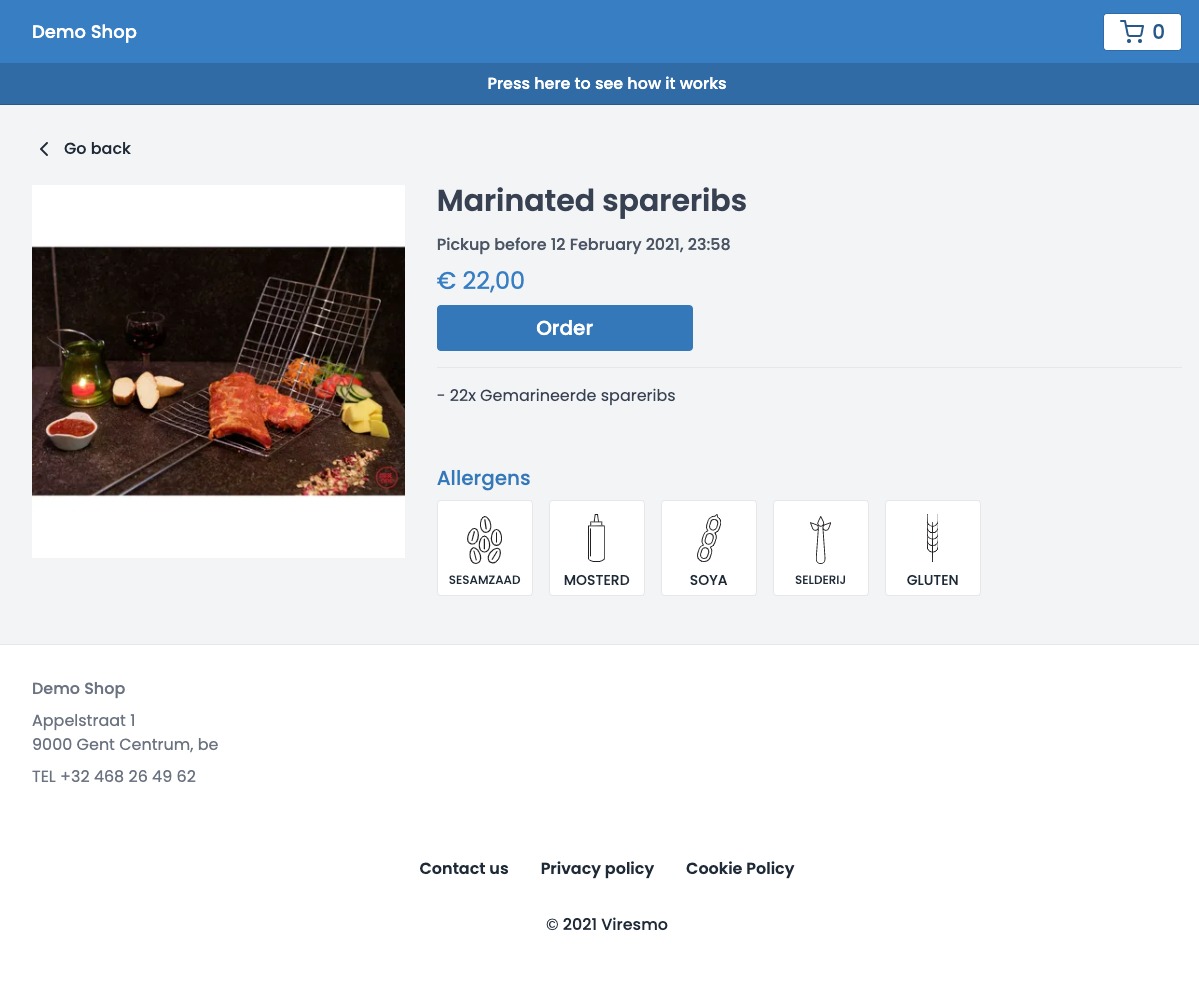 - To see more information about a product, one can click on "Info" or the photo of the product. On the detail page of a product one can find more information about the content, allergens, etc.