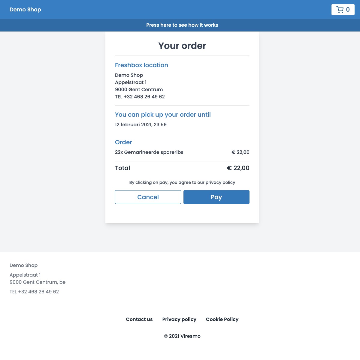 - The customer will see an overview of his order. If this overview is correct, a payment can be made. Click on "Pay" at the bottom. The customer can make his payment on the page of our payment provider Mollie.