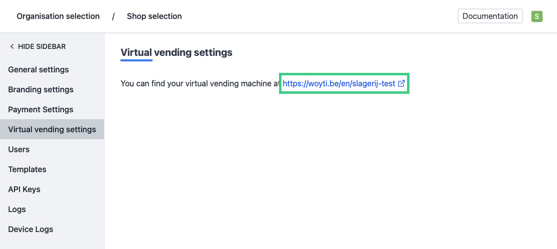 - You will find the link to your personal Virtual Vending Machine shop on this page.