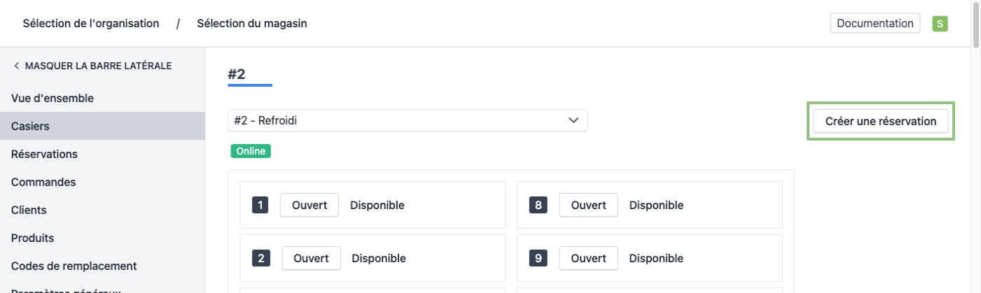 - Une fois la réservation effectuée, une case doit encore lui être attribuée. Vous pouvez donc toujours créer des commandes entrantes dans la plateforme et ne les placer dans une boîte que plus tard.