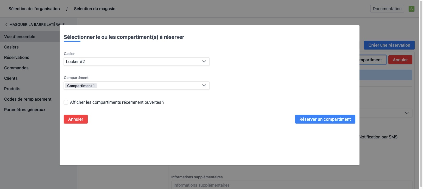 Cliquez sur "Réserver une boîte" pour attribuer une boîte.