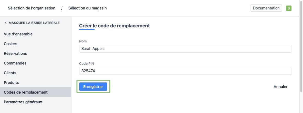 - Donnez un nom à votre code, ce pourrait être le nom d'un membre du personnel, par exemple, et entrez un numéro à 6 chiffres.