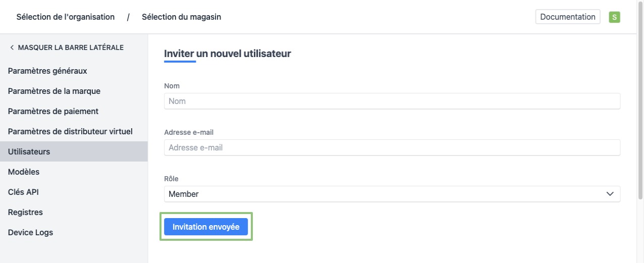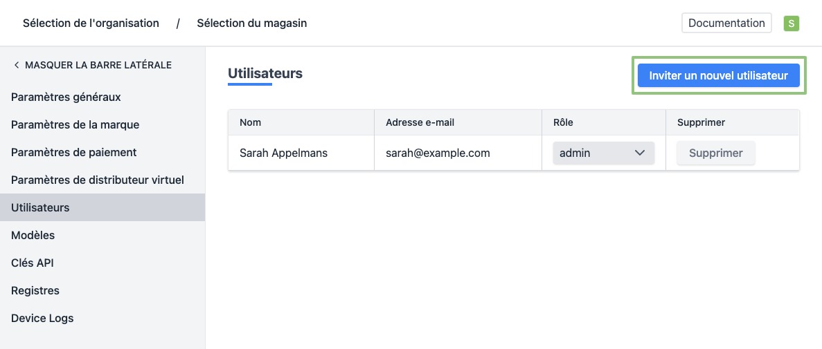 - Cliquez en haut à droite sur "Inviter un utilisateur".