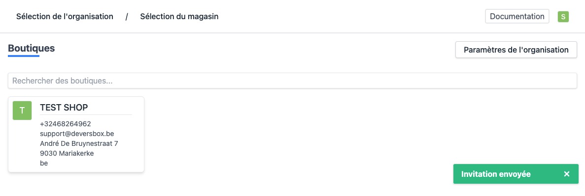 - Une fois la création réussie, vous serez redirigé vers l’aperçu de votre organisation. Vous verrez une notification en bas à droite indiquant que l'invitation a été envoyée.