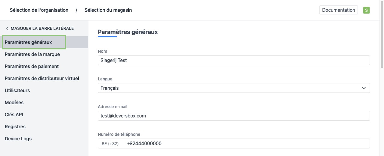 - Dans le menu de gauche, accédez à Paramètres généraux.