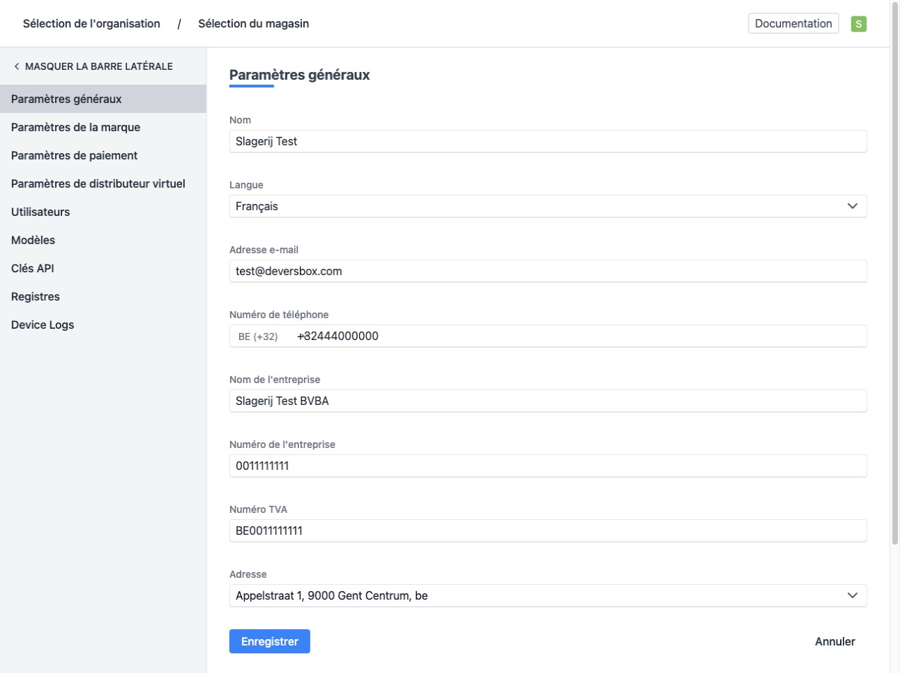 Vous pouvez modifier toutes les informations sur votre organisation ici:
