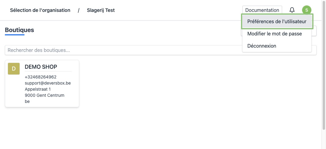 - Dans le coin supérieur droit, cliquez sur l'icône ronde avec l'initiale de votre prénom. Un menu déroulant apparaît. Cliquez sur «Préférences de l'utilisateur».